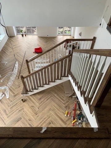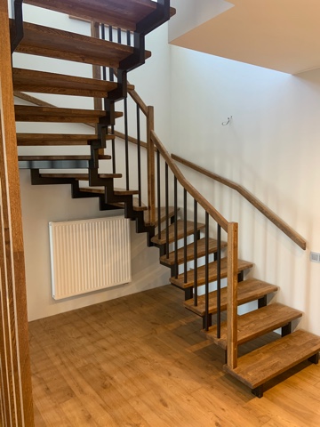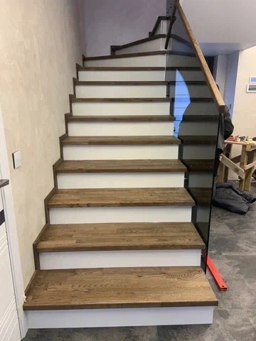 П-образная лестница, облицовка из дуба