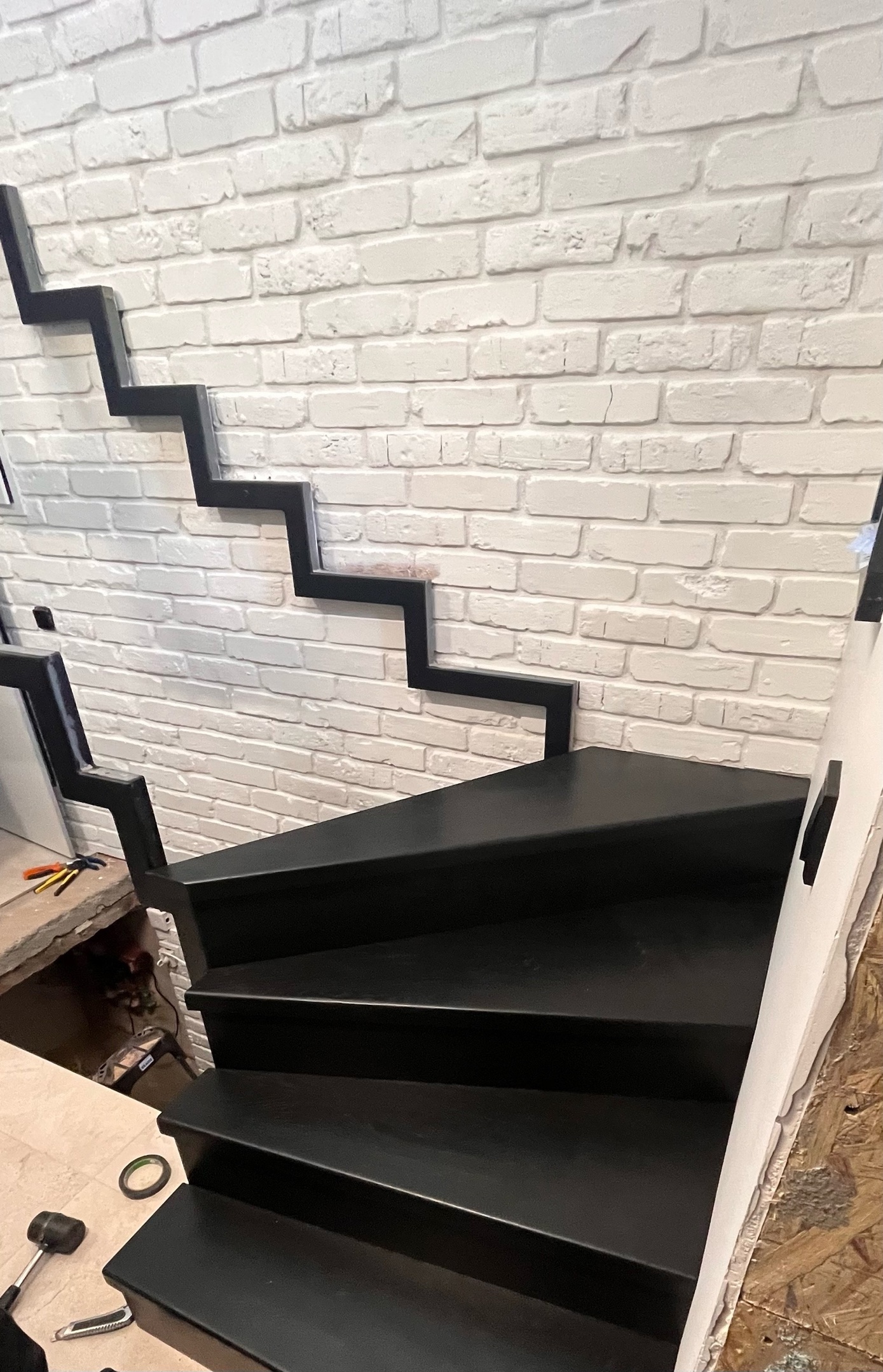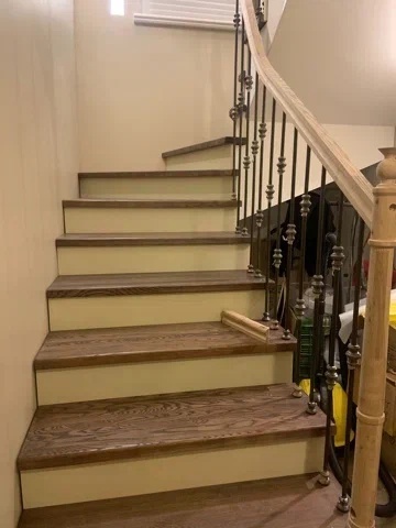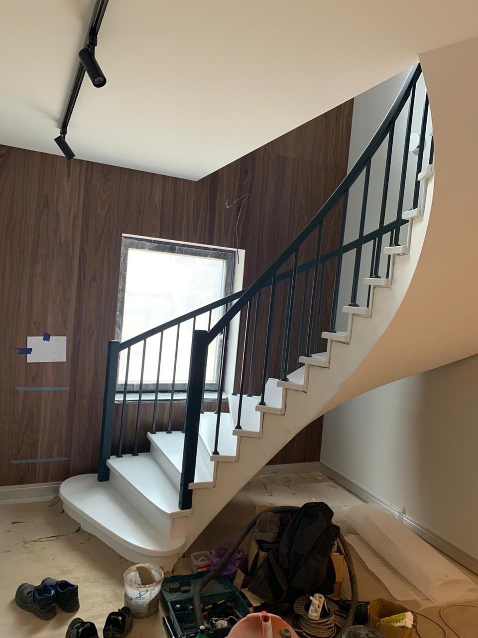 Облицовка бетонной лестницы с гнутым поручнем – не проблема!